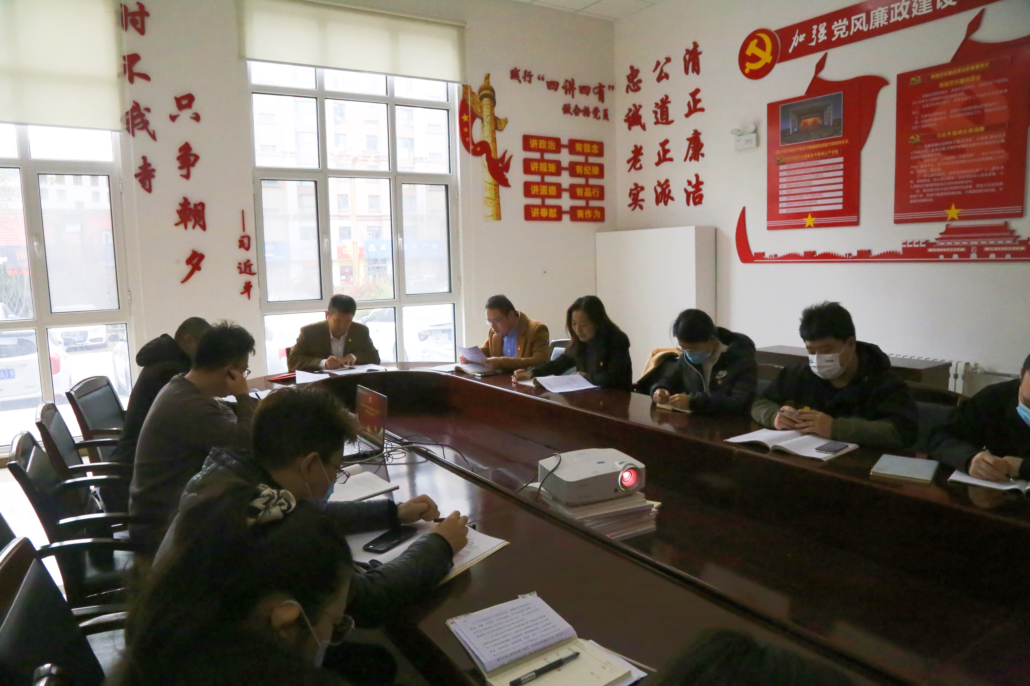 會上,首先開展“第一議題”活動,全體黨員集中學(xué)習(xí)了《中共中央關(guān)于黨的百年奮斗重大成就和歷史經(jīng)驗的決議》《習(xí)近平:關(guān)于《中共中央關(guān)于黨的百年奮斗重大成就和歷史經(jīng)驗的決議》的說明》,由支委委員傳達(dá)黨的十九屆六中全會精神 。同時集體學(xué)習(xí)了《習(xí)近平總書記考察黃河入??诓⒅鞒终匍_深入推動黃河流域生態(tài)保護(hù)和高質(zhì)量發(fā)展座談會紀(jì)實》《黨史18組通知(學(xué)習(xí)十九屆六中全會“七個重點”)》等文件材料;并宣讀了《藍(lán)天集團(tuán)黨委2021年度黨費收支情況》;多名黨員代表分別圍繞學(xué)習(xí)習(xí)近平總書記重要講話精神、重要指示要求進(jìn)行研討發(fā)言;隨后為于琳琳、蘇杰、柳凱等四位黨員同志過政治生日。最后,集中收看了燈塔大課堂第二十五課《黨課開講啦》。