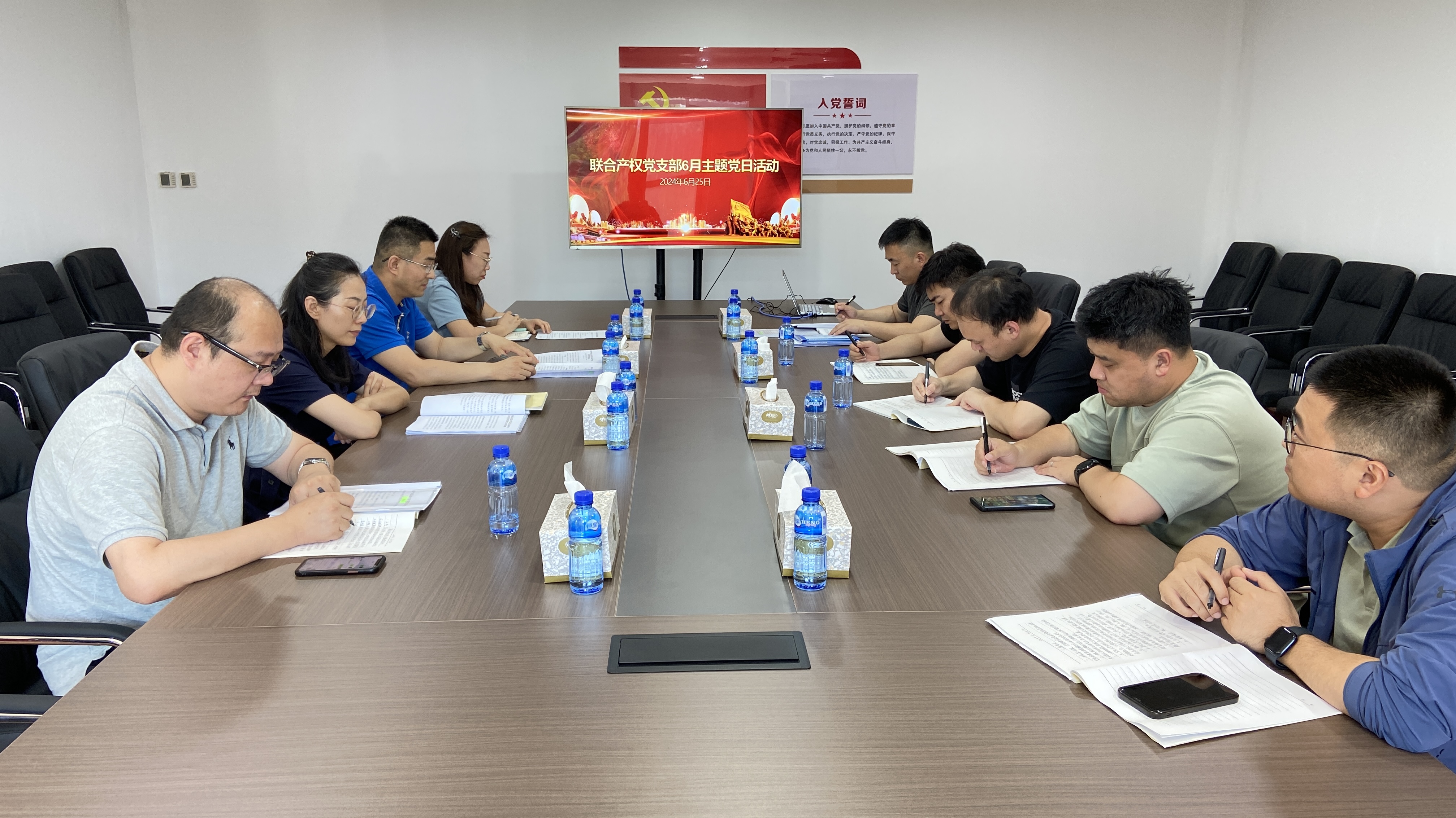 會議首先開展集體學(xué)習(xí),學(xué)習(xí)“第一議題”《習(xí)近平總書記在山東考察時的重要講話精神》》并進(jìn)行交流發(fā)言;隨后開展全面從嚴(yán)治黨調(diào)研活動,聯(lián)合產(chǎn)權(quán)黨支部匯報上半年全面從嚴(yán)治黨主體責(zé)任落實(shí)情況,車向前同志做點(diǎn)評發(fā)言;支部副書記講授“學(xué)條例、明規(guī)矩、知敬畏、守底線”專題紀(jì)律黨課;學(xué)習(xí)《中共中央辦公廳印發(fā)在全黨開展黨紀(jì)學(xué)習(xí)教育的通知》、《習(xí)近平在2024年春季學(xué)期中央黨校(國家行政學(xué)院)中青年干部培訓(xùn)班開班之際作出重要指示》、《關(guān)于運(yùn)用典型案例加強(qiáng)<中國共產(chǎn)黨紀(jì)律處分條例>學(xué)習(xí)的通知》、《中央黨的建設(shè)工作領(lǐng)導(dǎo)小組關(guān)于認(rèn)真學(xué)習(xí)領(lǐng)會習(xí)近平總書記關(guān)于全面加強(qiáng)黨的紀(jì)律建設(shè)的重要論述扎實(shí)開展黨紀(jì)學(xué)習(xí)教育的通知》、《中國共產(chǎn)黨紀(jì)律處分條例》第8-9章(第94-129條)重點(diǎn)內(nèi)容;黨員代表圍繞“六項(xiàng)紀(jì)律”進(jìn)行交流研討;集中學(xué)習(xí)《中國共產(chǎn)黨一百年大事記(1936-1940)》;觀看《中國共產(chǎn)黨紀(jì)律處分條例》解讀微視頻 —本次《條例》修訂體現(xiàn)了哪些特點(diǎn);開展重溫入黨誓詞及交流座談活動;最后,公示了6月份黨費(fèi)收繳情況。