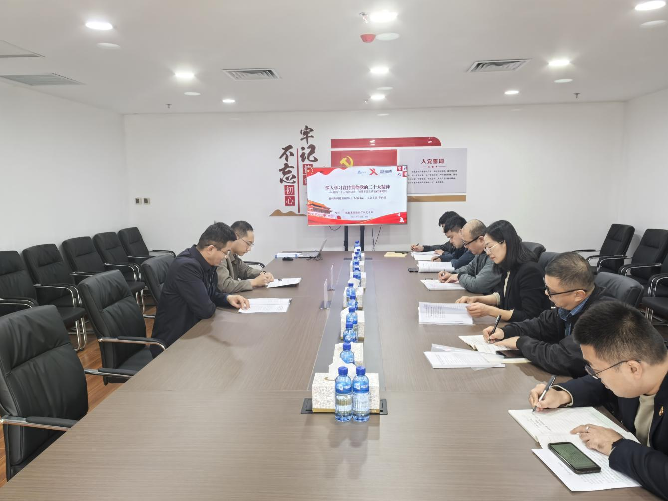 10月24日聯(lián)合產(chǎn)權(quán)黨支部開展10月黨員大會暨“不忘初心 牢記使命”主題黨日、黨章專題學(xué)習(xí),黨支部副書記主持,投控集團(tuán)黨委副書記、紀(jì)委書記車向前同志,紀(jì)檢專員楊日誠同志及支部黨員參加會議。