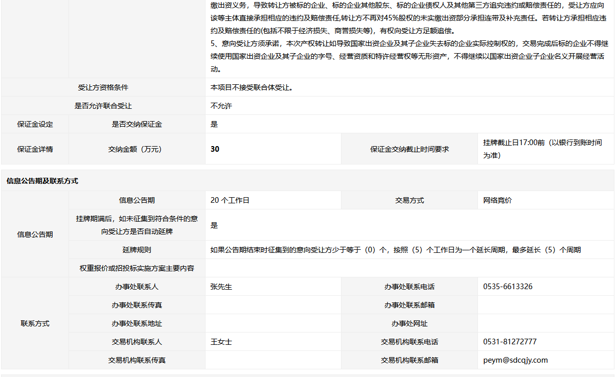 煙臺(tái)市景新置業(yè)有限公司50%國(guó)有股權(quán)