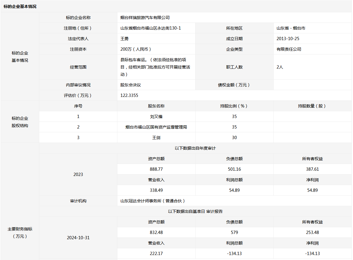 煙臺(tái)祥瑞旅游汽車(chē)有限公司35%國(guó)有股權(quán)