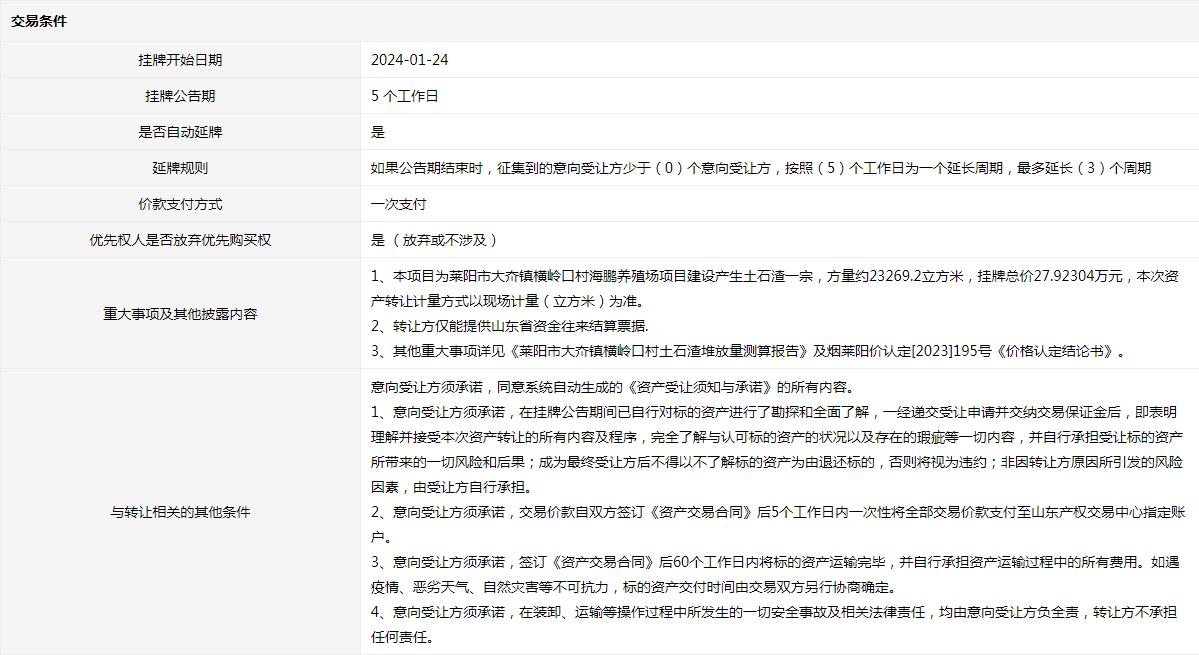萊陽(yáng)市大夼鎮(zhèn)橫嶺口村海鵬養(yǎng)殖場(chǎng)項(xiàng)目建設(shè)產(chǎn)生土石渣一宗