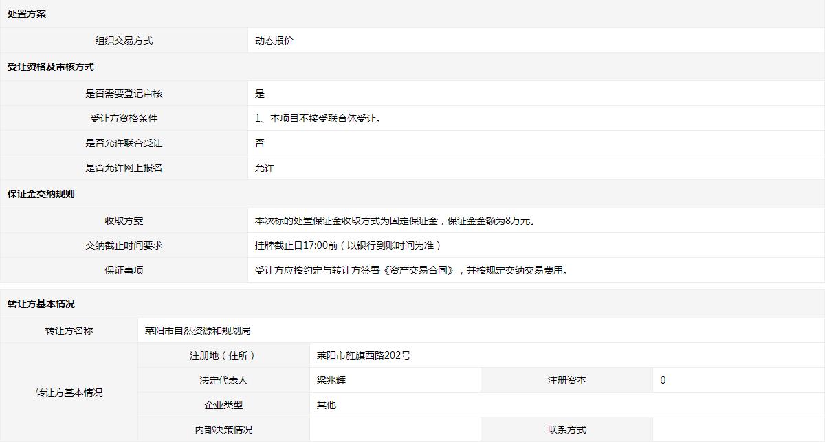 - 轉(zhuǎn)讓方:萊陽(yáng)市自然資源和規(guī)劃局