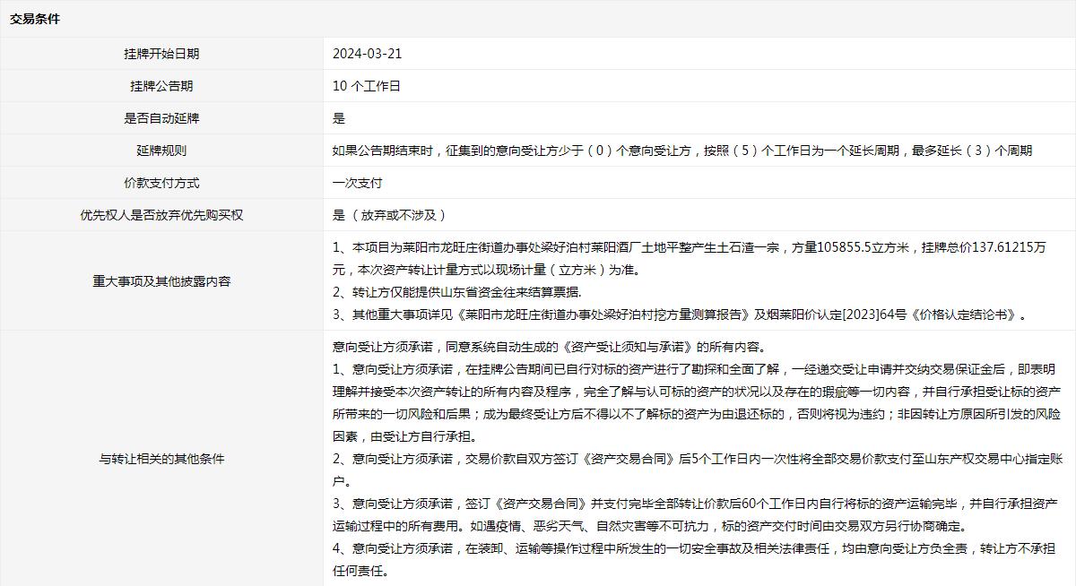 轉讓方:萊陽市自然資源和規(guī)劃局