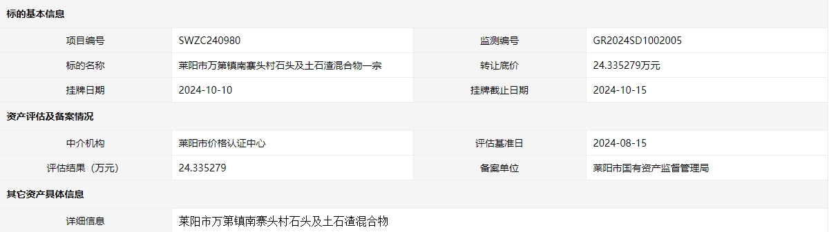 萊陽市萬第鎮(zhèn)南寨頭村石頭及土石渣混合物一宗