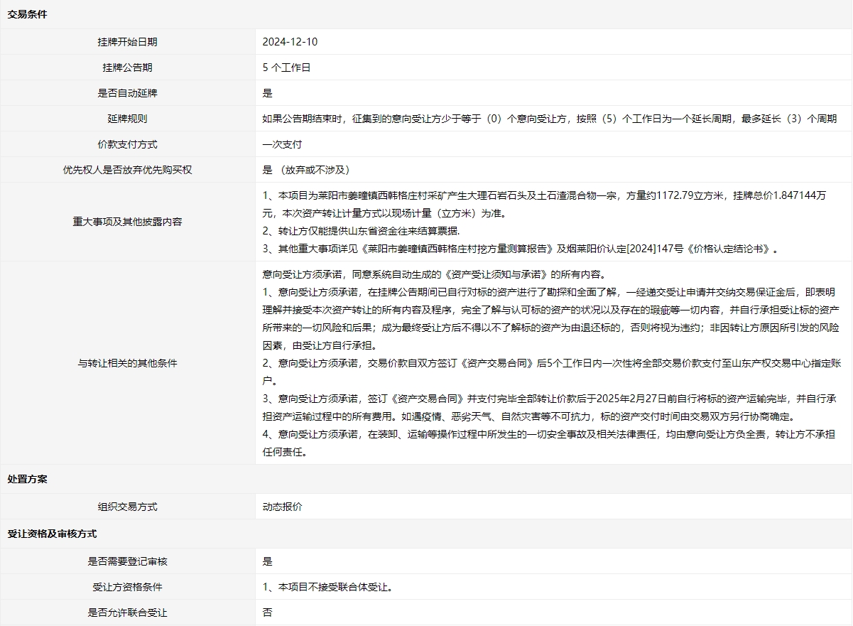 • 掛牌起止日期:2024年12月10日至2024年12月16日