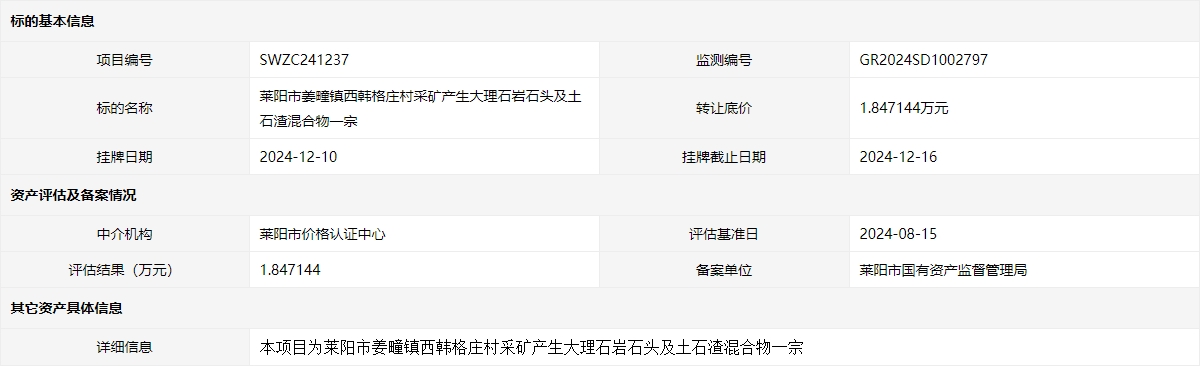 • 轉(zhuǎn)讓方:萊陽(yáng)市自然資源和規(guī)劃局