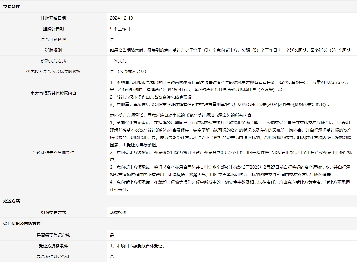 掛牌起止日期:2024年12月10日至2024年12月23日