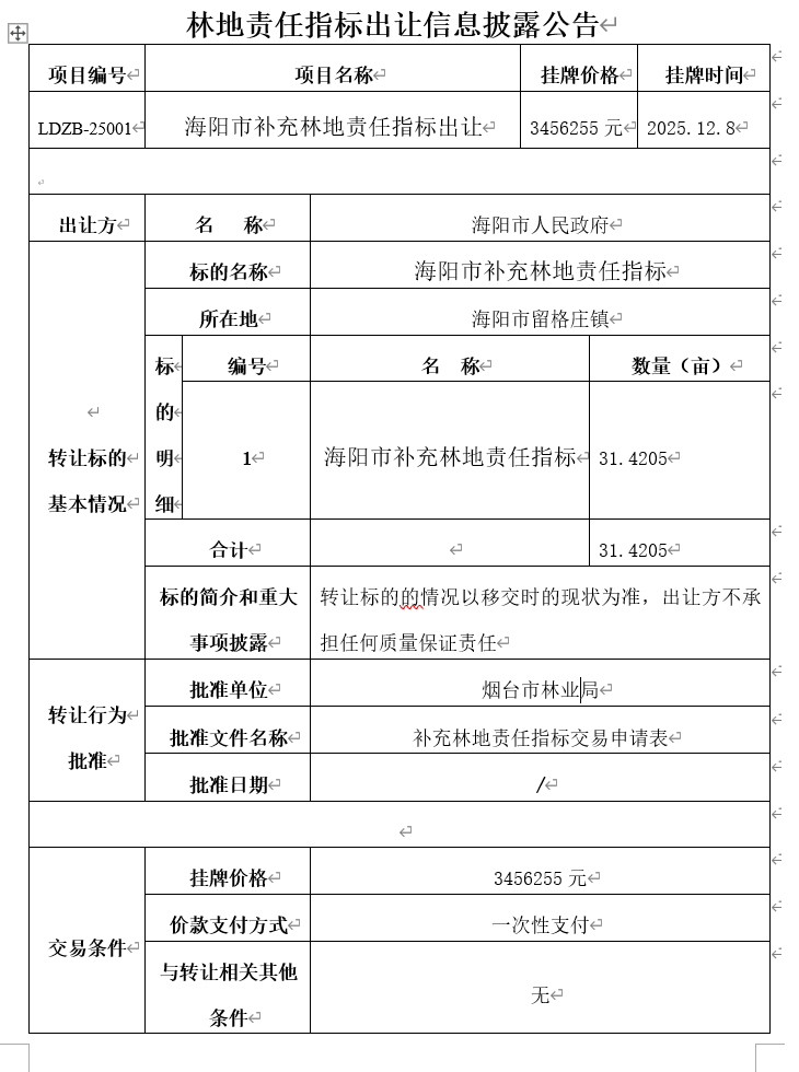 海陽市補充林地責(zé)任指標出讓