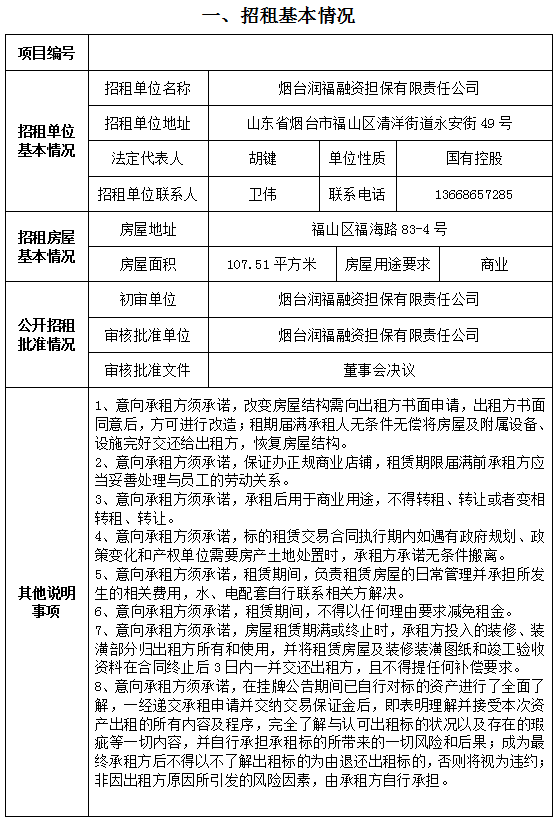 煙臺(tái)市南大街267號(hào)一樓東側(cè)門頭房招租公告