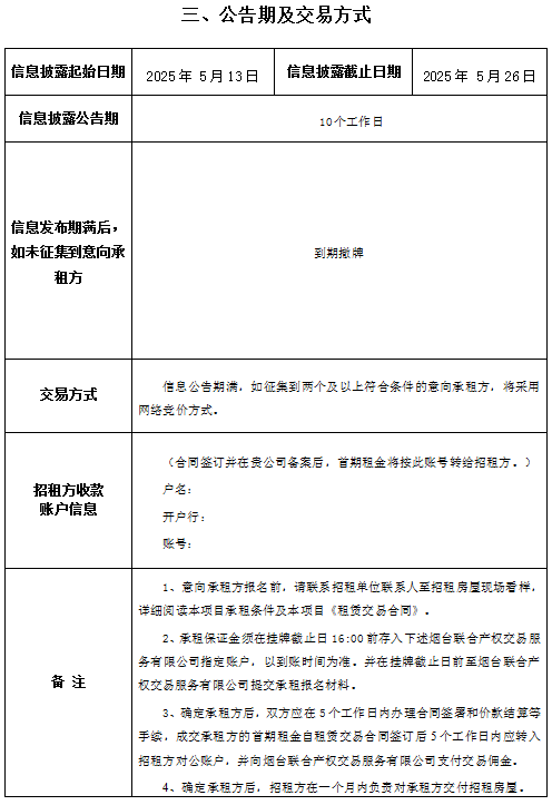 掛牌起止日期:2025年5月13日至2025年5月26日