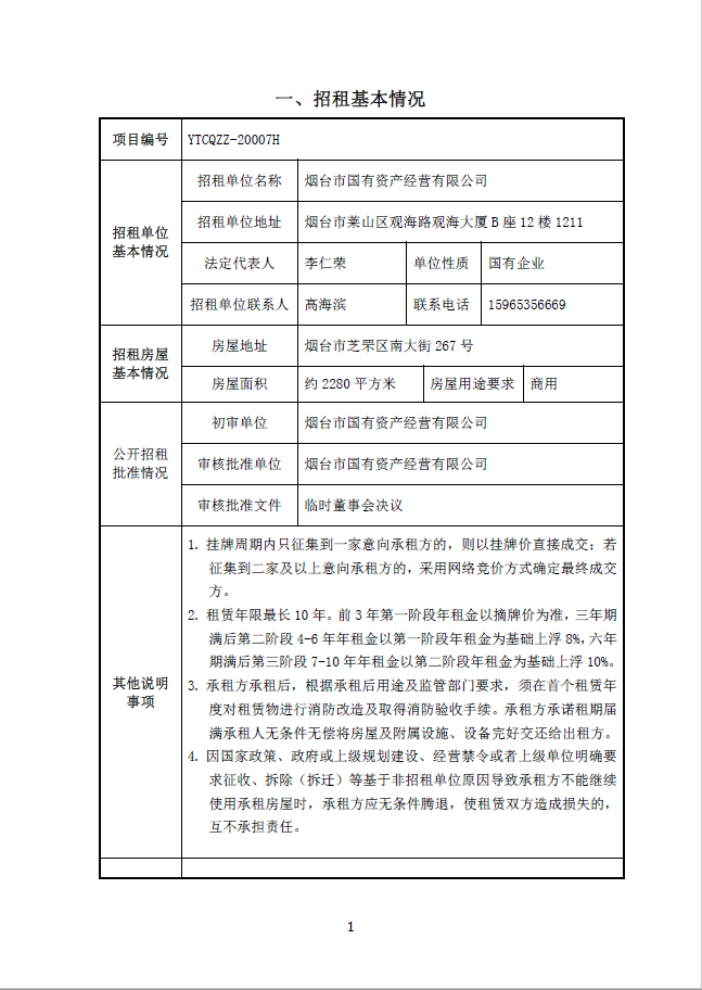 煙臺(tái)市南大街267號(hào)1-7層(除一樓東側(cè)門頭房)、東側(cè)停車場(chǎng)招租公告